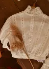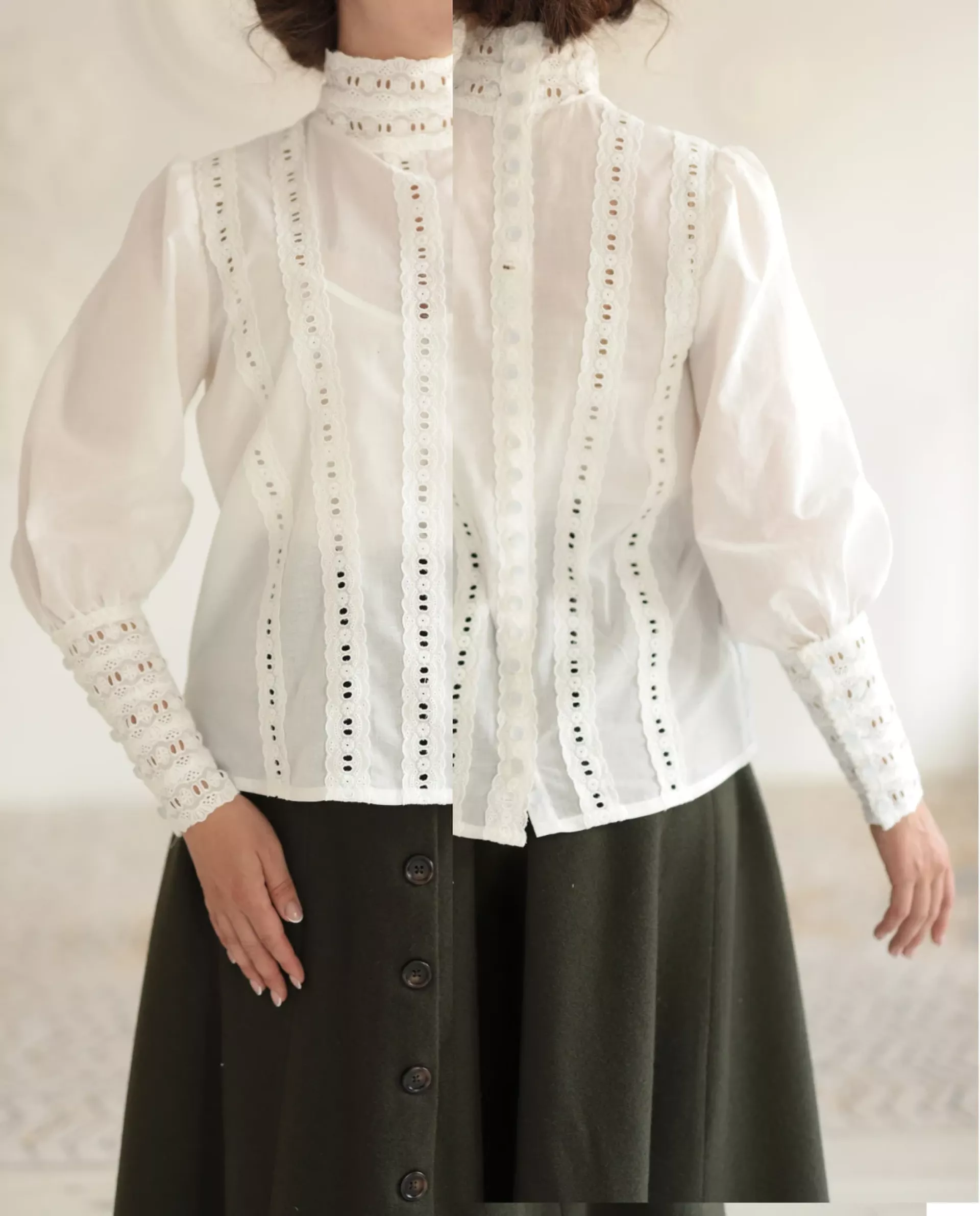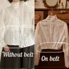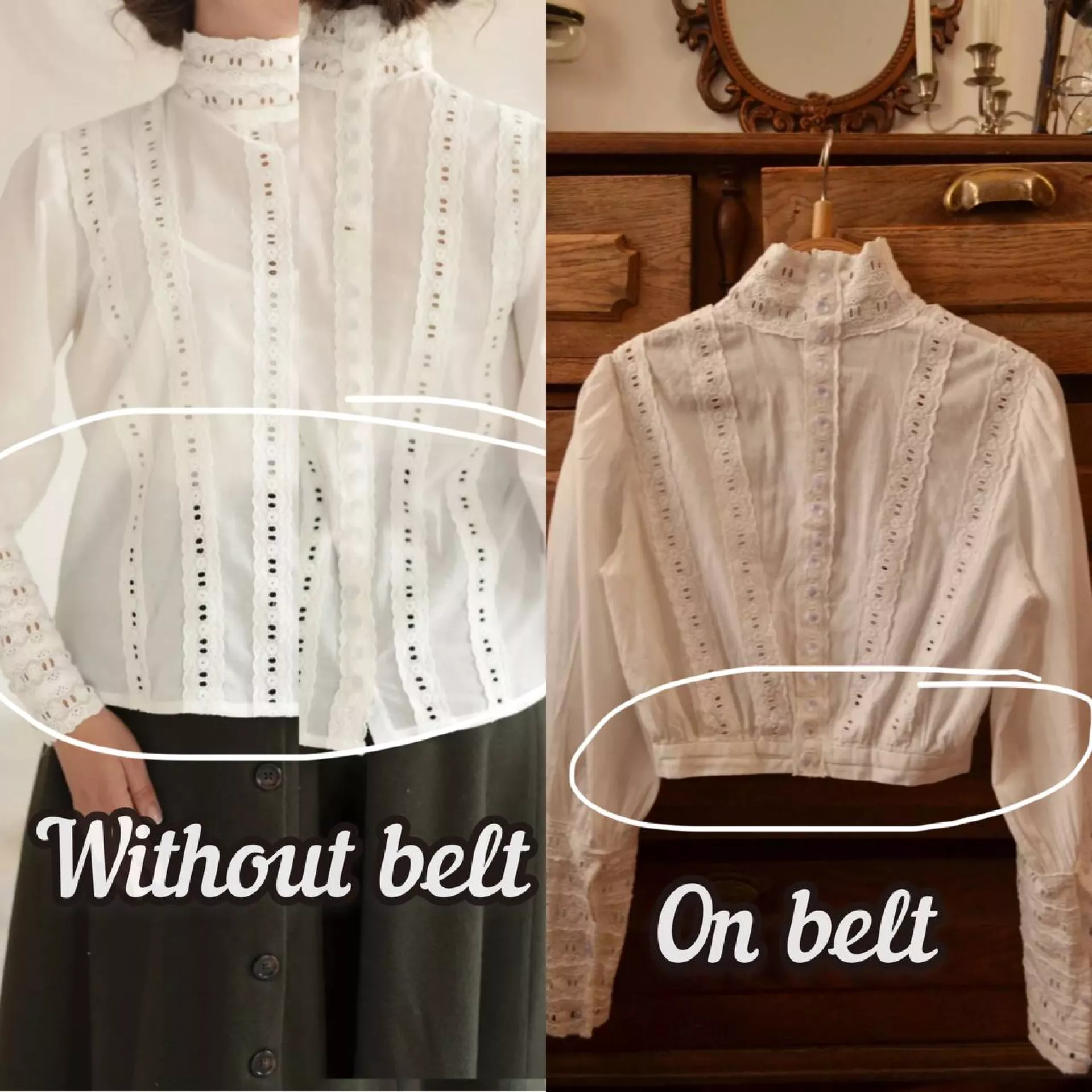 You can choose one of the design options - a blouse with a sewn-in belt, or a long one without a belt.